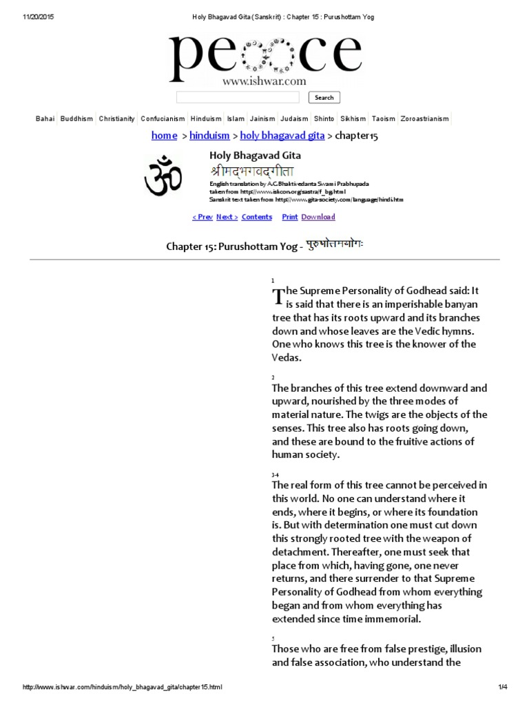 Holy Bhagavad Gita Sanskrit Chapter 15 Purushottam Yog Pdf Indian Religions Religious Faiths